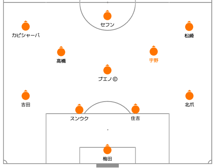 ライン間が間延びする中、宇野を投入。ボールへの圧力を高め、流れを戻そうとする意図が見えました