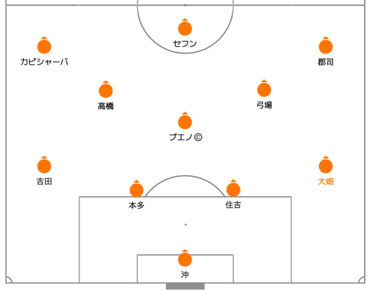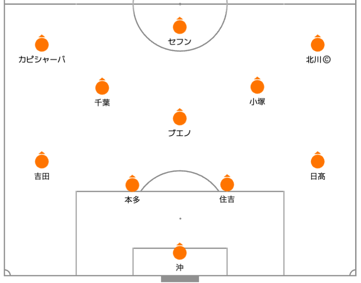 ブエノ選手と小塚選手がダブルボランチ気味になる時間帯もありました。